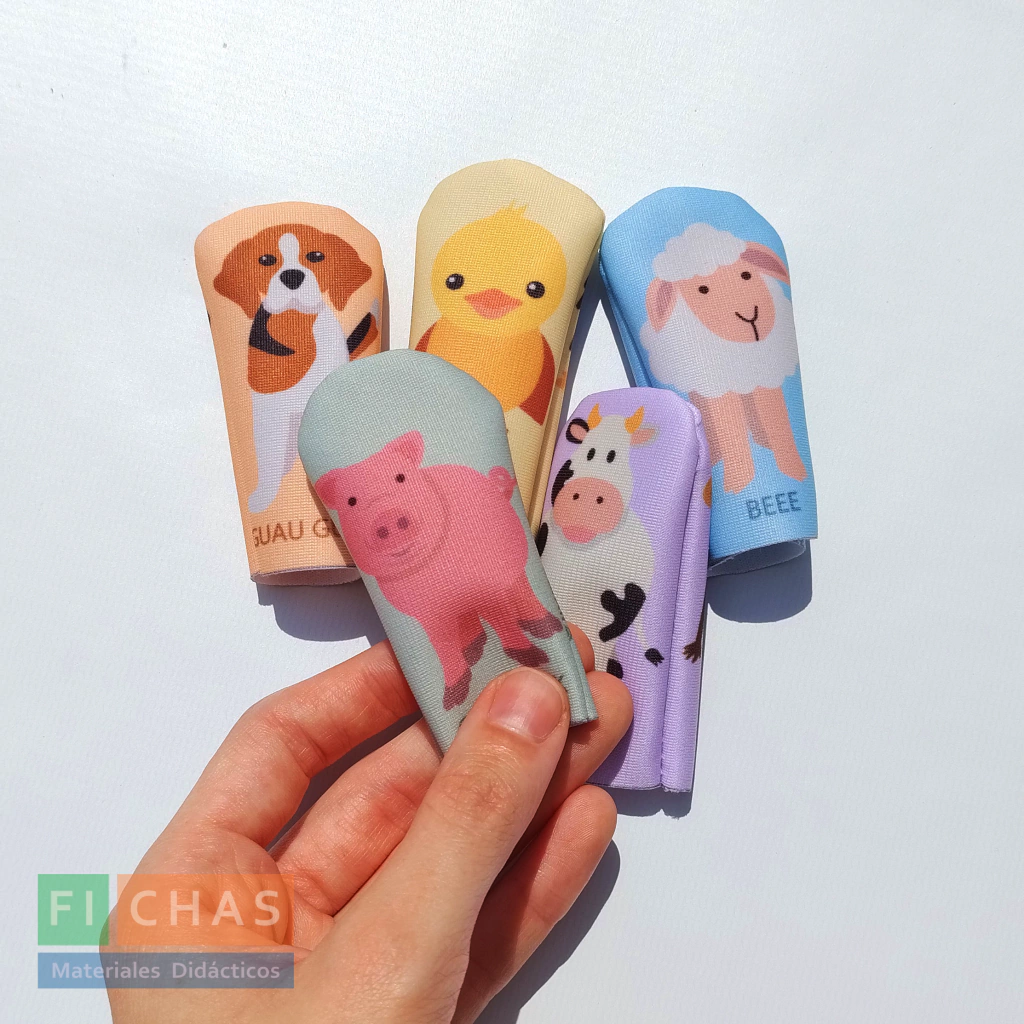 Este material consta de 5 títeres reversibles realizados en tela sublimada, livianos y lavables.
